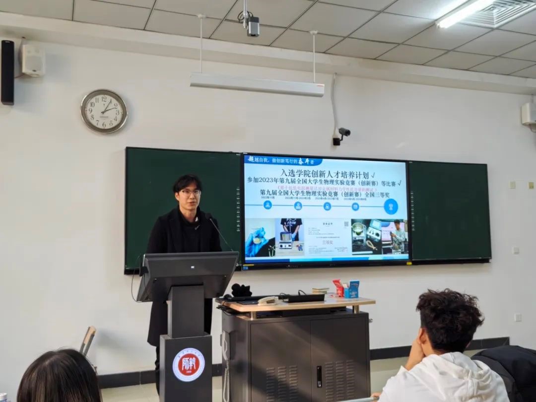 我院电子信息科学与技术专业的黄鹏同学,获“王克昌奖学金”。他从学习、实践、科创竞赛、防止内耗四个方面分享了他的经验做法,同时激发了同学们强烈的竞赛激情。