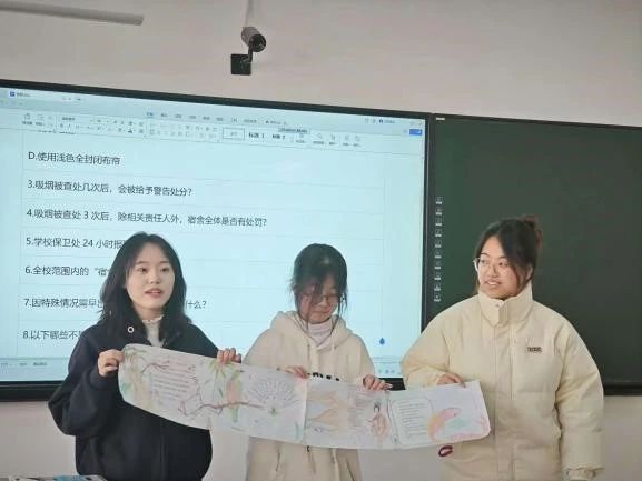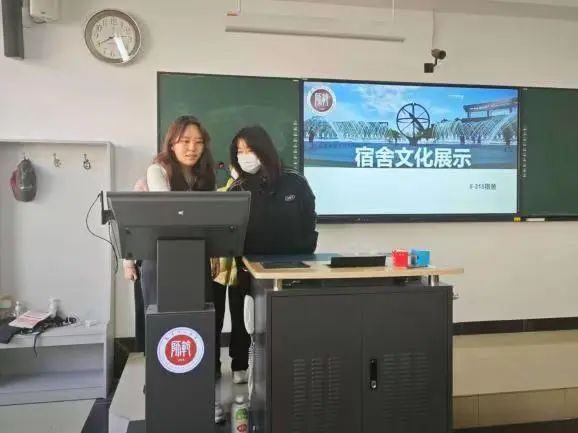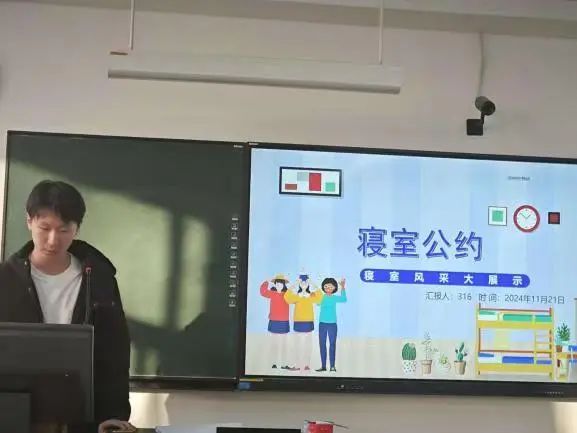 此次评比大赛的评委由教师评委和学生评委共同组成。其中教师评委由学工办的孙畅老师与高悦桐老师担任,学生评委由各参赛宿舍的宿舍长组成。比赛环节设计匠心独运,涵盖了宿舍公约的创意展示、校规校纪的互动问答以及评委老师的开放式提问,不仅保证了比赛的公平公正,更极大地提升了活动的互动性和参与性。展示及问答顺序均通过抽签随机决定,为比赛增添了一抹趣味与期待。