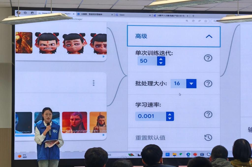 现场以“如何训练模型区分哪吒和敖丙”为例,通过分类模型,向同学们展示了训练AI模型学会准确分辨哪吒和敖丙图片的过程,还展示了机器训练的关键参数是如何影响机器的学习成果的。