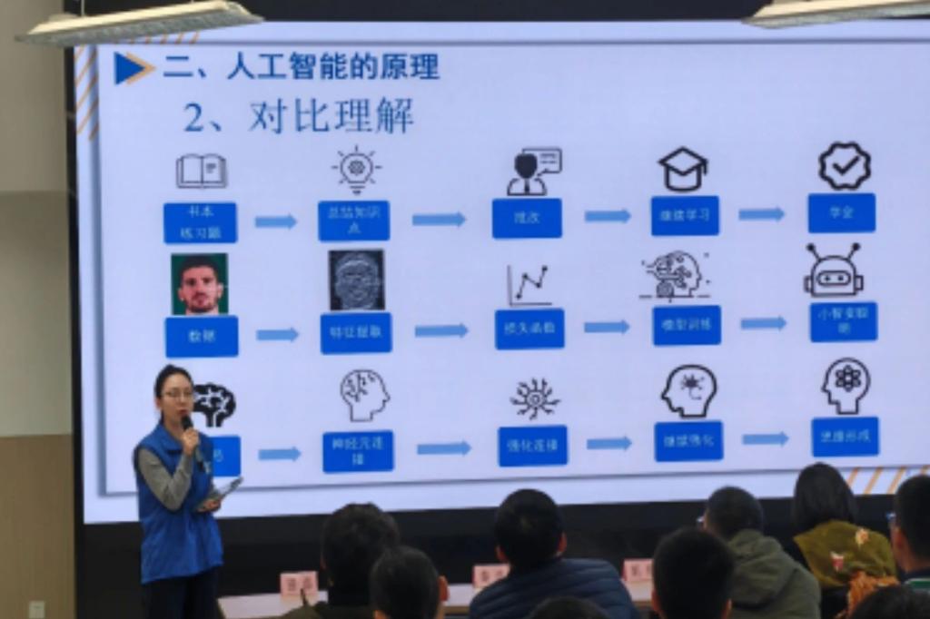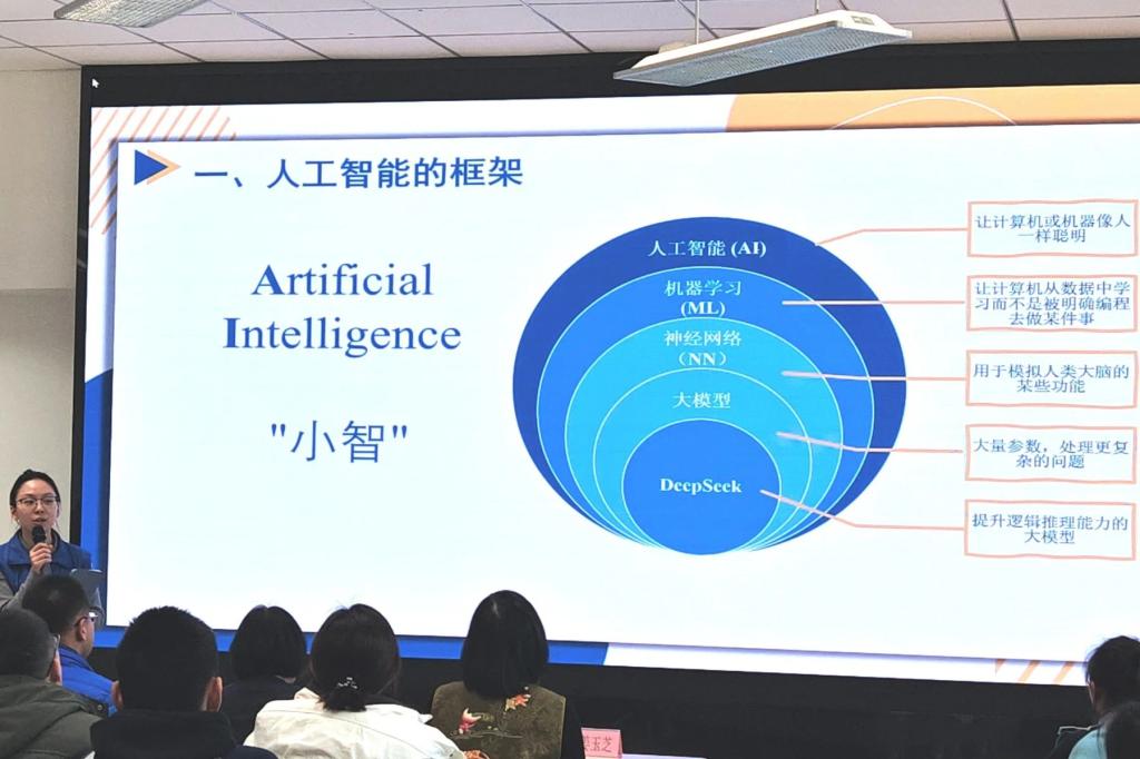 在本次科普讲解活动中,志愿者以近日火遍全球的“DeepSeek”为引,围绕人工智能的基本原理和多个应用场景展开讲解。志愿者用贴近生活的事例生动具体地解析了“人工智能”、“机器学习”、“神经网络”、“大模型”等热点名词的内涵,详细解释了人工智能模型的训练过程。