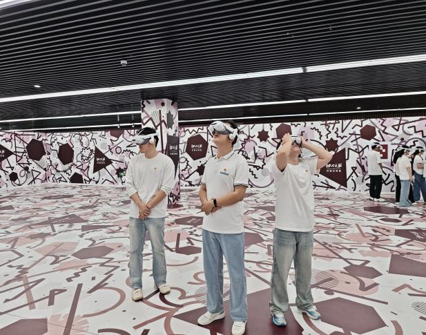 在“数字一大・初心之旅”——天津首个红色主题VR沉浸式展览的体验参观中,师生党员通过VR技术独特的视听语言及体验感受,时空穿越至1921年,“亲历”中共一大会议召开,在沉浸式体验中感受先辈们的坚定信念和革命精神。